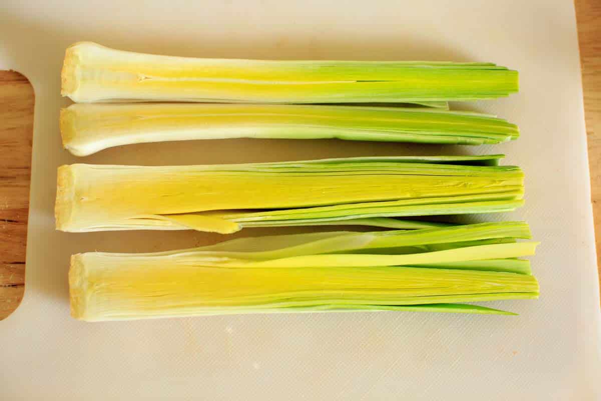 Somehow, I find the packages of leeks at Trader Joe’s (which are pre-trimmed) are perfectly clean. But you’ll want to cut them lengthwise to check for dirt and clean if necessary.