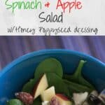 Spinach salad with apple, feta, dried cranberries and honey almonds. Inspired by the Enlightened Spinach Salad from Mellow Mushroom. Paired with my honey poppyseed dressing, you'll love this salad with all the delicious flavors!